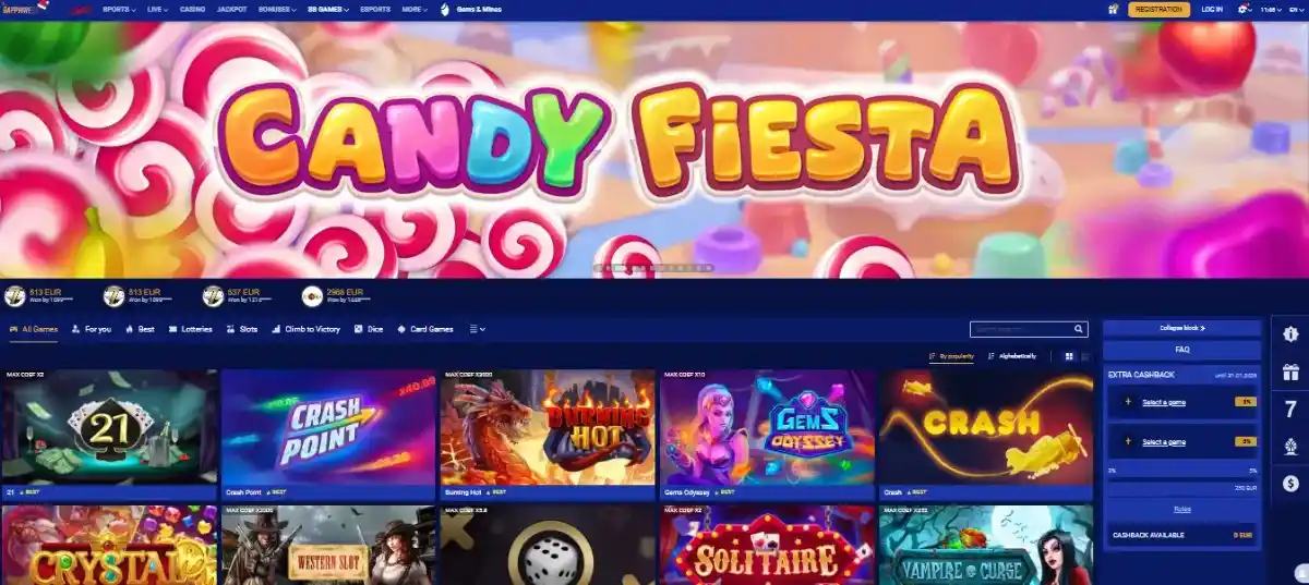 SapphireBet hosts slots from over 120 providers, ensuring variety in themes, features, and volatility levels.